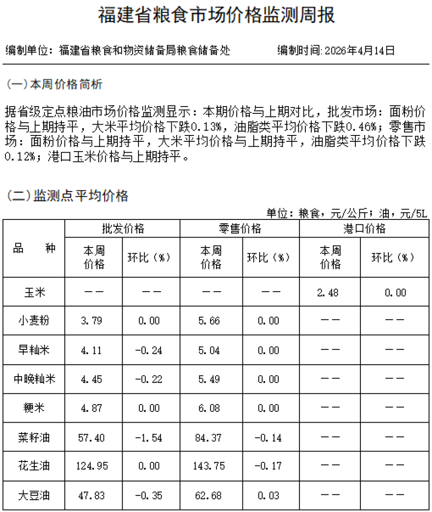 价格监测周报(2026年4月14日)