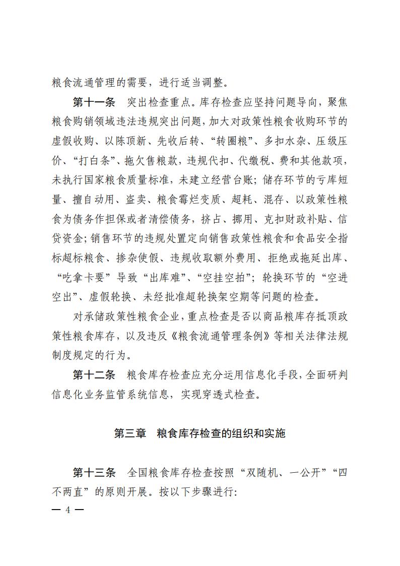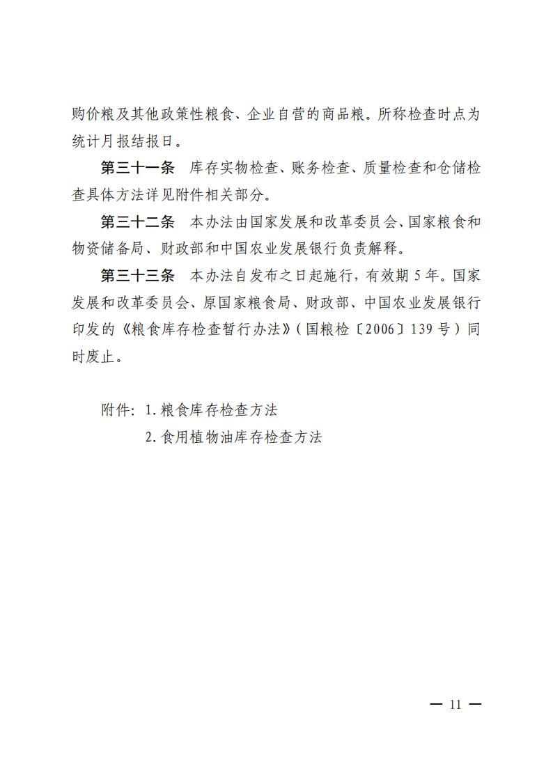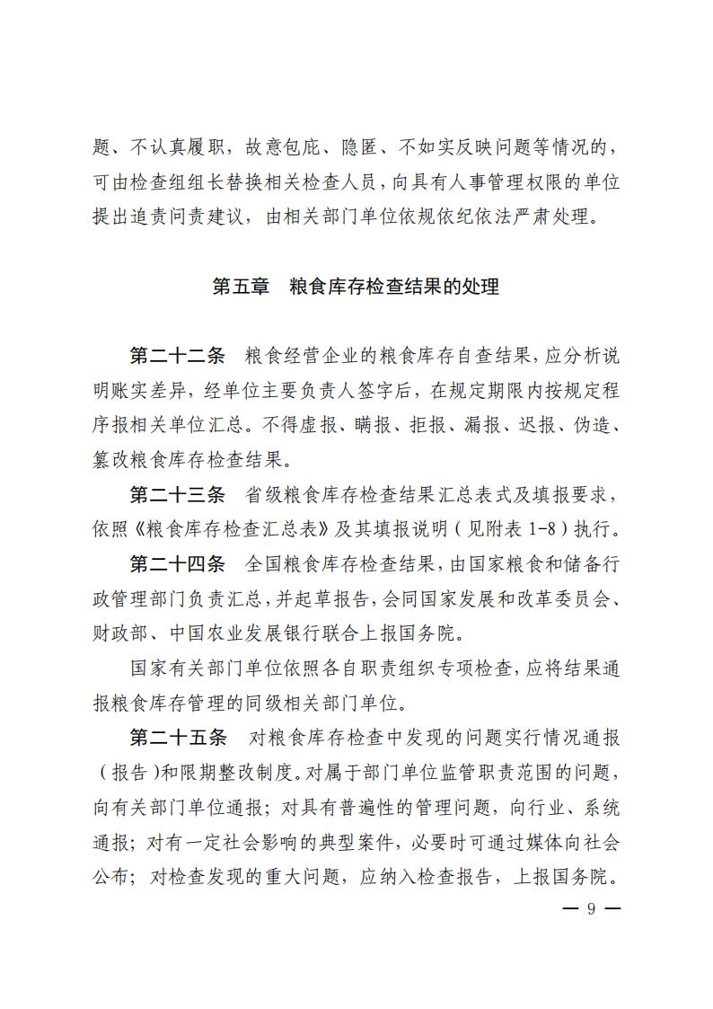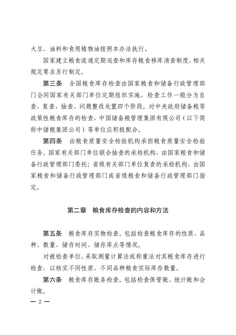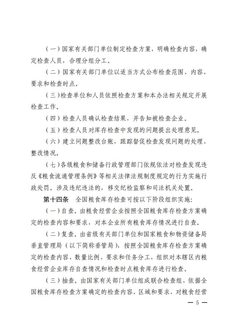 为贯彻落实《粮食流通管理条例》(国务院令第740号),规范对粮食经营企业的粮食库存检查工作,准确掌握粮食经营企业库存粮食的品种、数量、质量等情况,监督和指导粮食经营企业加强库存管理,及时发现问题、堵塞漏洞、消除风险隐患,国家粮食和物资储备局会同国家发展和改革委员会、财政部、中国农业发展银行制定了《粮食库存检查办法》,现印发给你们,请遵照执行。